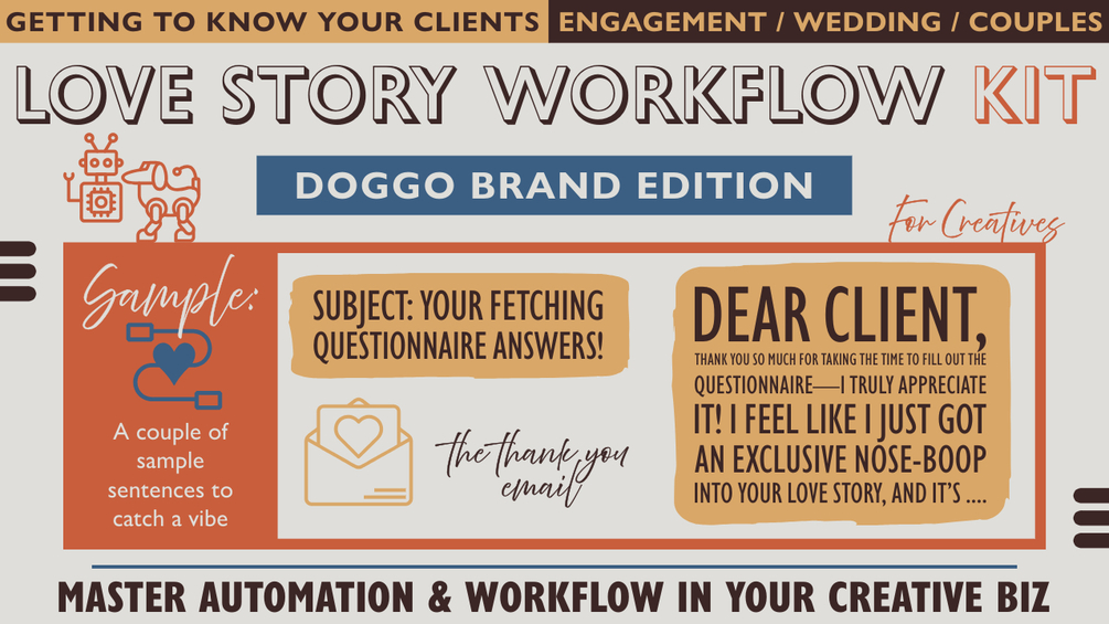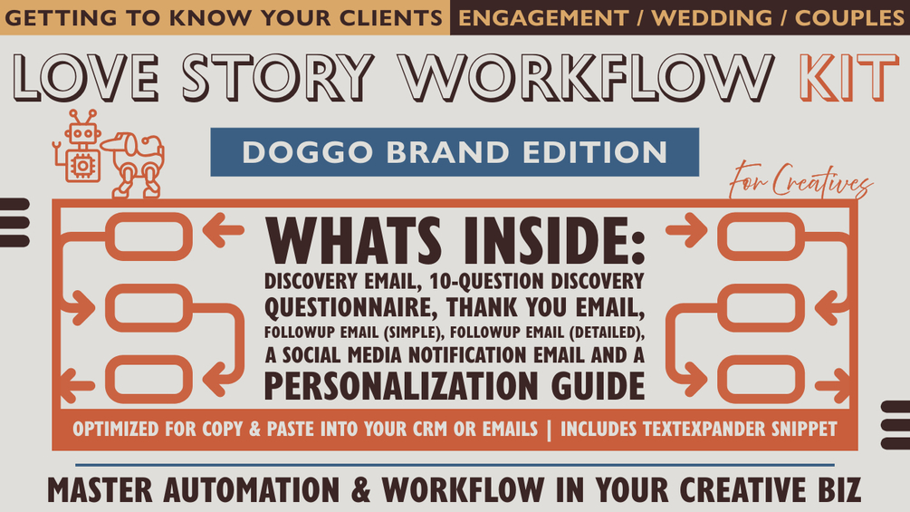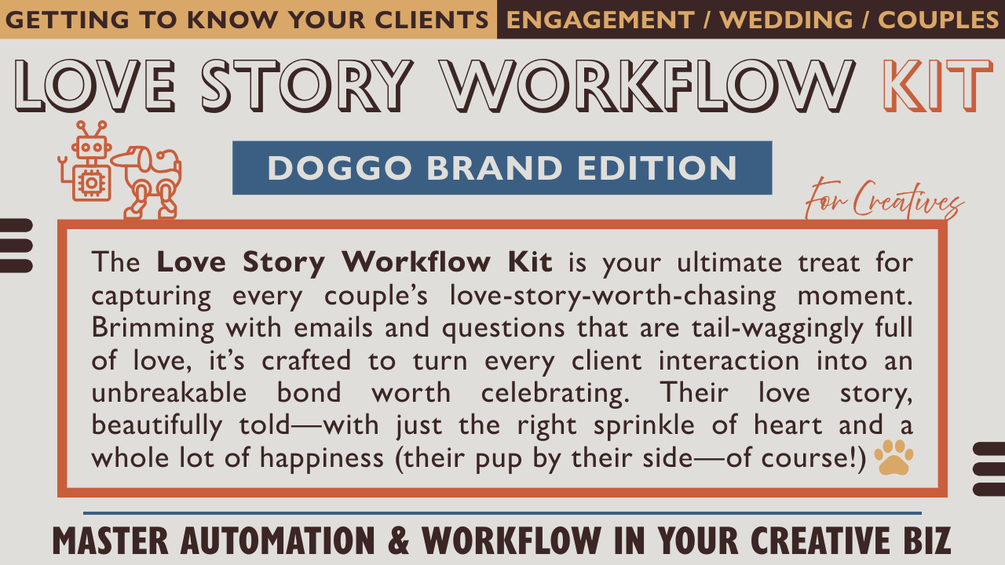 Download the Love Story Workflow Kit today and see for yourself just how easy it is to transform workflows into joyful celebrations. Because when it comes to love stories, every detail deserves to be told beautifully... and maybe with a good tail wag thrown in too.