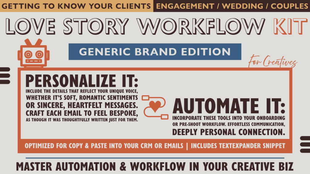 Download the Love Story Workflow Kit today and see how effortlessly you can turn every interaction into a celebration. Because at the end of the day, every love story deserves to be beautifully told... starting with yours.